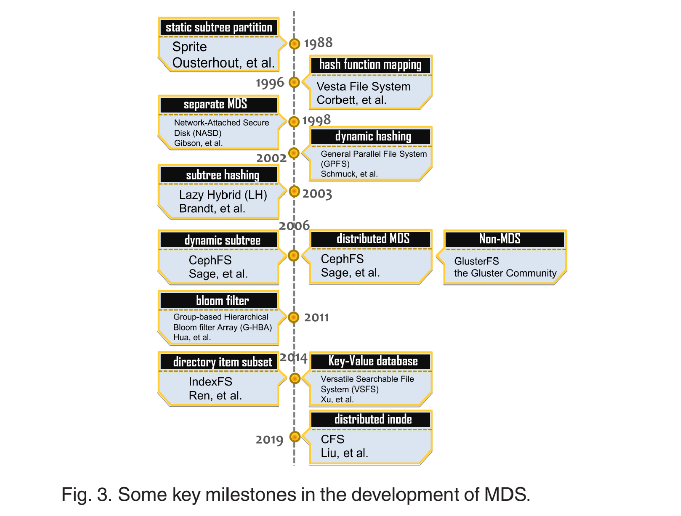 H. Dai, Y. Wang, K. B. Kent, L. Zeng and C. Xu, “The State of the Art of Metadata Managements in Large-Scale Distributed File Systems — Scalability, Performance and Availability” in IEEE Transactions on Parallel and Distributed Systems, vol. 33, no. 12, pp. 3850-3869, 1 Dec. 2022, doi: 10.1109/TPDS.2022.3170574. ↩︎
